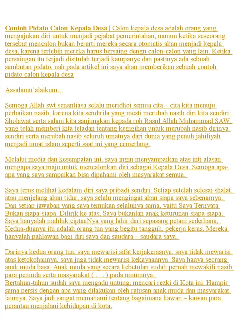 Contoh Naskah Pidato Visi Misi Bakal Calon Kepala Desa Cute766 from i0.wp.com Contoh sikap menghargai jasa para pahlawan di lingkungan masyarakat. Lebih lanjut dalam pemendagri nomor 84 tahun 2015 disebutkan bahwa pelaksana kewilayahan dilaksanakan oleh kepala dusun atau sebutan lain yang ditetapkan lebih lanjut dalam peraturan bupati/walikota dengan. Apakah anda kesulitan menemukan tema dan judul contoh pidato yang anda cari? Contoh pidato di bawah ini merupakan 10 koleksi contoh pidato yang bisa anda lihat satu demi satu. Kalian tenang aja, semua orang sepertinya pernah mengalaminya juga saat masa sekolah. Yang kami hormati keluarga calon besan kami keluarga bapak …….dan ibu kami mewakili keluarga besar calon mempelai wanita dengan ini menerima calon mempelai pria dan insyaallah akan kami nikahkan dengan putri kami. Ketika persaingan itu terjadi disitulah terjadi kampanye dan pastinya ada sebuah sambutan pidato, nah pada artikel ini saya akan memberikan sebuah contoh pidato calon kepala desa. Kepala dusun adalah seorang pemimpin di masyarakat.