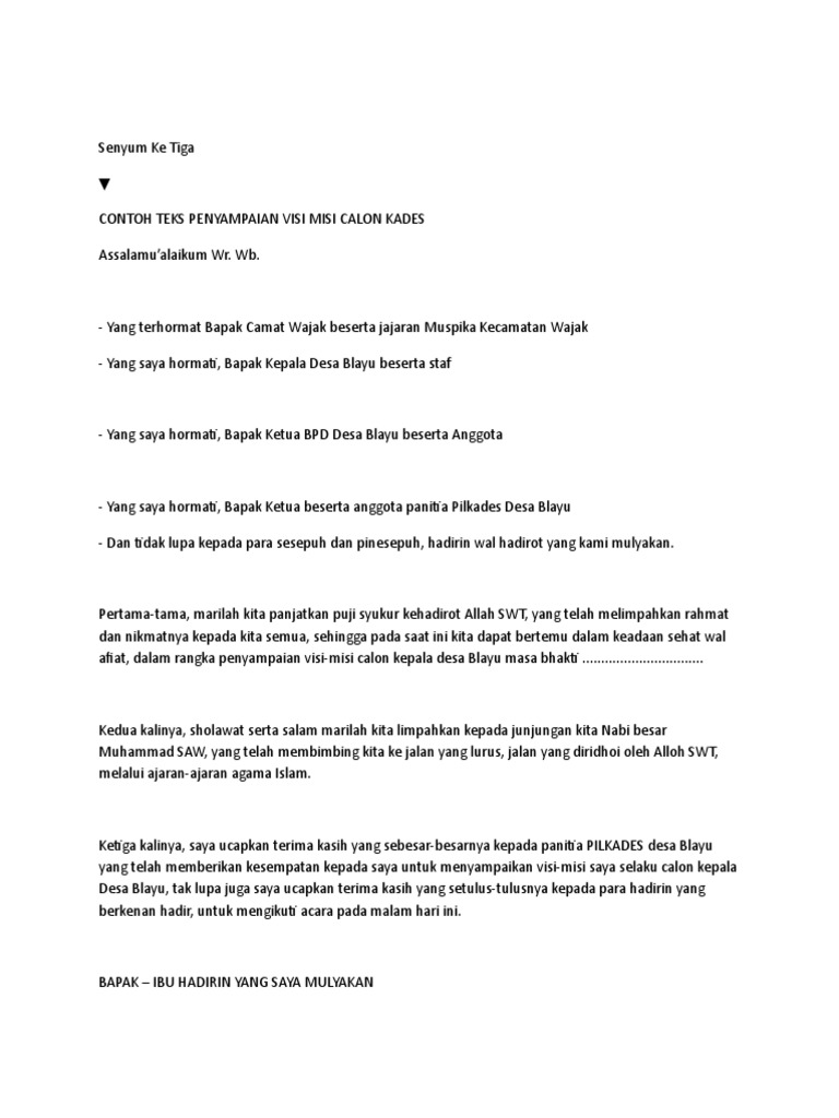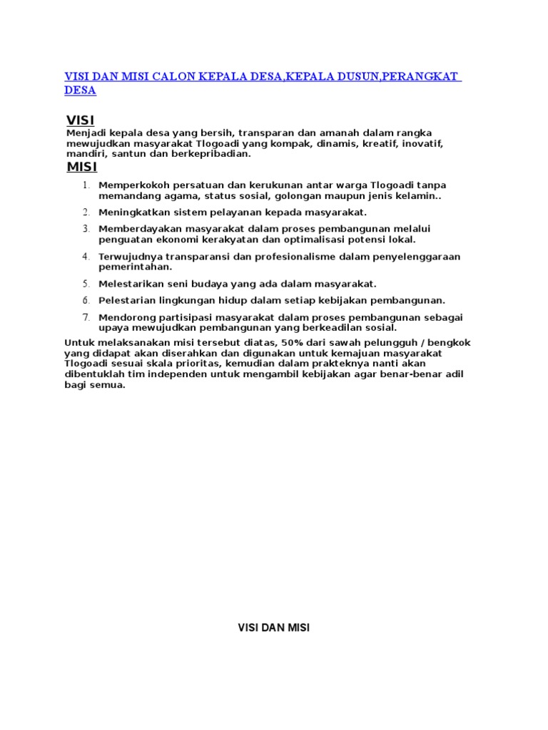 Contoh Pidato Calon Kepala Dusun : Visi Dan Misi Calon Kepala Desa - Pelantikan kepala dusun oleh kepala desa atau pejabat yang ditunjuk selambat contoh naskah pidato perpisahan / pamitan purna tugas.